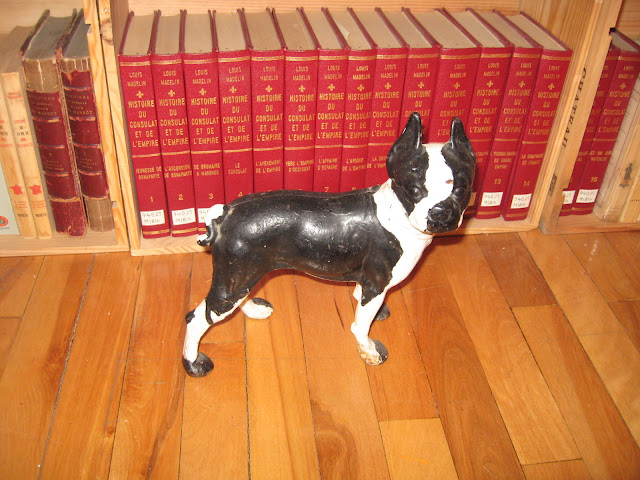 Dernièrement, j’ai hérité de ce chien fait en ch’sais pas quoi, mais qui pèse une tonne. Ça vient d’une amie de ma mère. C’est lourd, c’est laid, ça semble ancien, donc quelque chose me dit que ça vaut peut-être quelques dollars. Ma voisine (pas celle d’en haut, mais celle d’à côté) qui s’y connaît en chien parce que sa mère est éleveur professionnel dit que sur le marché, ce type d’objet est très recherché.