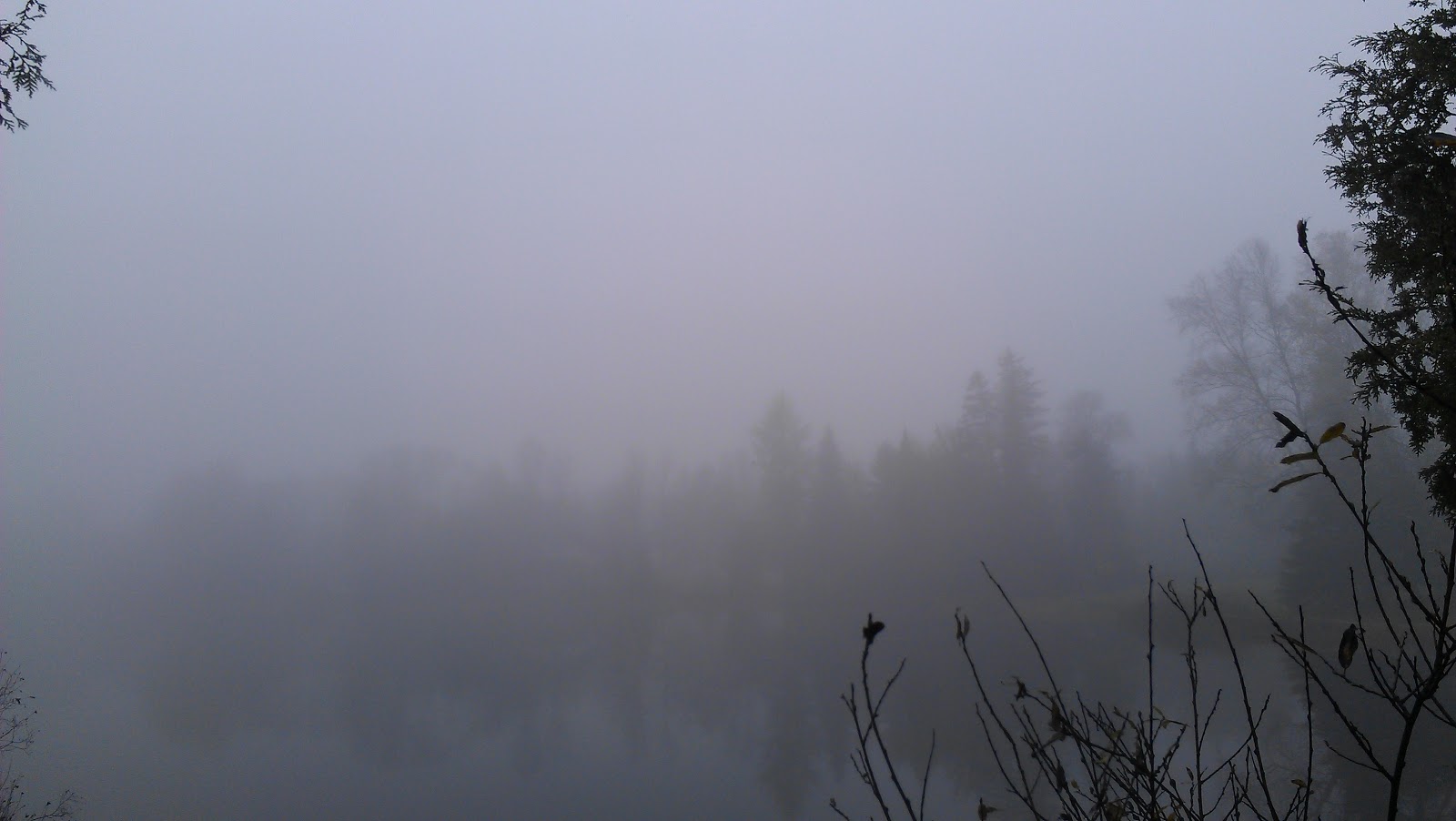 Je me lève. Le ciel est si bas qu’il vient toucher le lac juste en face. Je ne déteste pas. On dirait un voile momentanément baissé sur la vie. Un changement de décor comme au théâtre. Quand il se relèvera, peut-être que les guerres auront cessées. Peut-être qu’il y aura plus d’équité entre les hommes. Peut-être que les famines n’existeront plus.