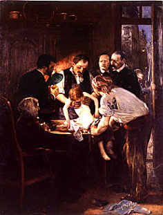 Disant : -Comme il est blanc ! approchez donc la lampe.